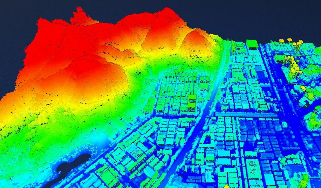 圖4 用顏色區(qū)分不同高度層的地表數(shù)據(jù)(深圳市航空攝影測量項目)