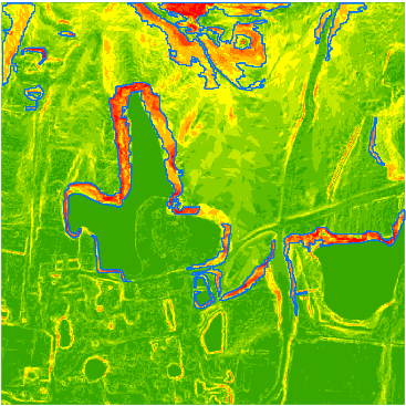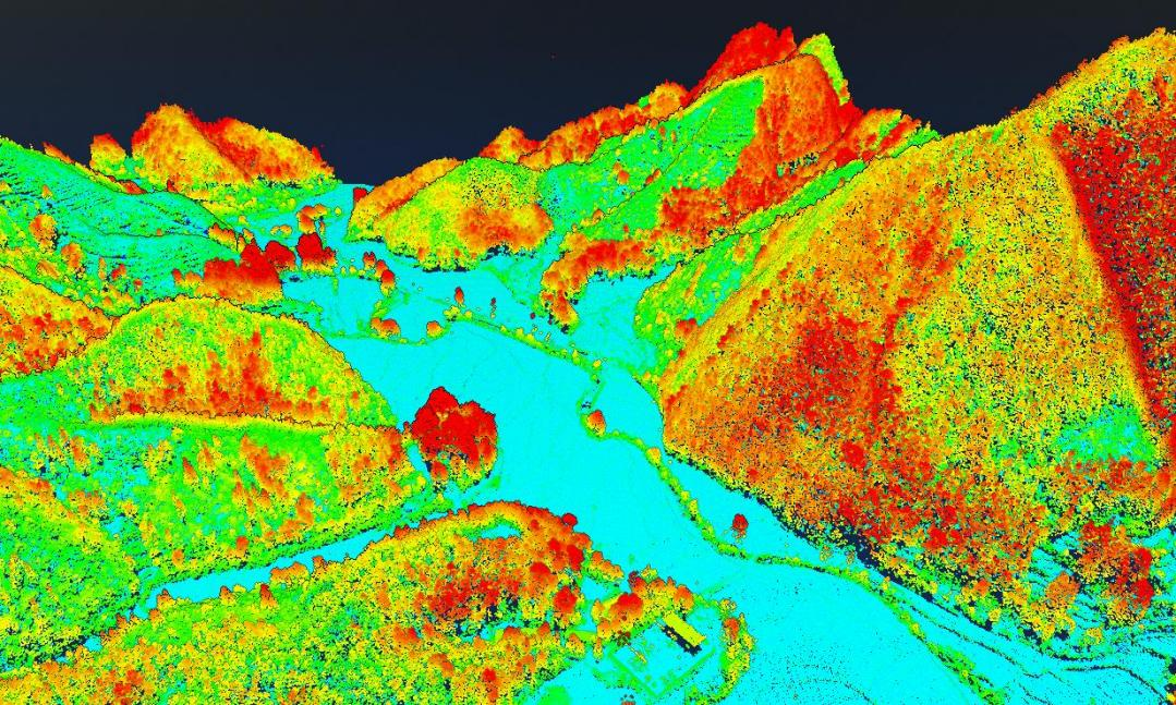 ④ 水資源管理:利用機載激光點云無法在水體獲取反射點的特性,通過算法可精準探測空洞點邊界,自動連接閉合形成水域矢量范圍線,同時借助數(shù)字高程模型(DEM)的地形起伏分析,可精準識別河流流向、水系匯流路徑、水體匯集區(qū)域等關(guān)鍵水文地形特征,數(shù)字表面模型(DSM)則可輔助區(qū)分水域周邊的地表覆被類型,為流域匯水分析、水利工程選址提供參考,顯著提升水資源調(diào)查、水域保護、流域沿岸管理與水利工程規(guī)劃的效率。如飛燕遙感在深圳市航空攝影測量項目中,繪制高精度水體矢量分布圖,為深圳市水資源管理提供數(shù)據(jù)支撐。