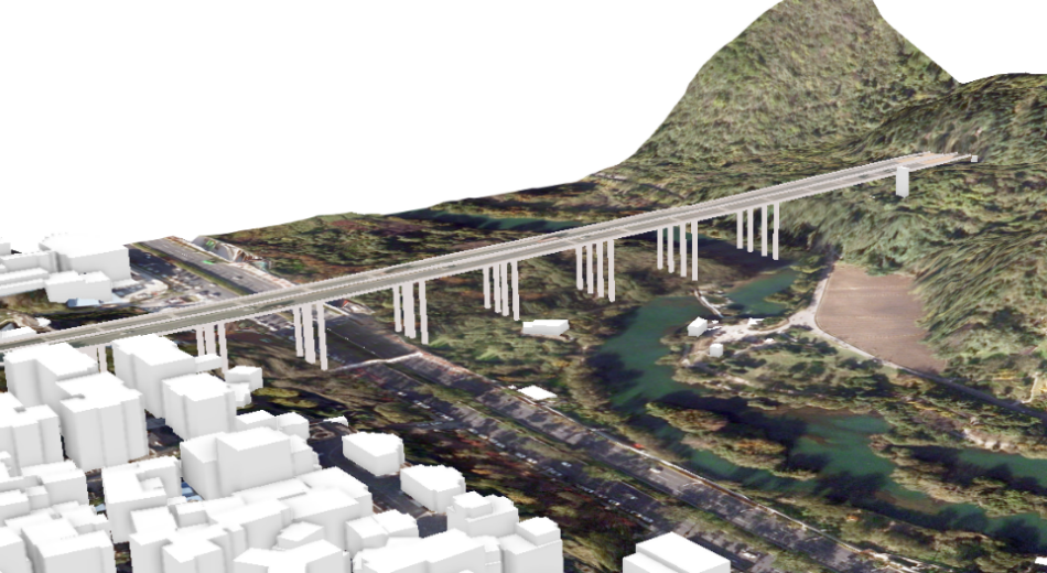 ② 交通規(guī)劃:傳統(tǒng)的公路勘察設(shè)計方法主要依賴航空攝影測量,輔以人工測量。然而,航空攝影測量受限于天氣、地形和植被的影響,以及精度不足,難以獲取橋隧設(shè)計所需的1:500比例尺高精度數(shù)據(jù)資料。而人工地面測量則因地勢陡峭、植被遮擋等因素,往往難以實施,且難以滿足工程建設(shè)的實際需求。利用機載激光雷達(LiDAR)技術(shù)生成的高精度數(shù)字高程模型(DEM)可提供精準的裸地地形高程信息,結(jié)合數(shù)字表面模型(DSM)獲取的地表構(gòu)筑物高程數(shù)據(jù),可全方位支撐道路選線、橋隧設(shè)計,有效解決傳統(tǒng)交通設(shè)計中的數(shù)據(jù)獲取難題,優(yōu)化道路設(shè)計全流程。如飛燕遙感在實施上虞全域三維實景模型項目中,通過 LiDAR 點云技術(shù)穿透樹木層直接提取路網(wǎng)信息,并通過分類算法精準提取道邊樹及路燈等分類圖層數(shù)據(jù),為交通規(guī)劃與道路周邊設(shè)施管理提供數(shù)據(jù)支撐。